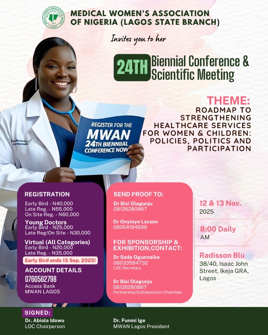 The Medical Women's Association of Nigeria(MWAN) is a non-governmental, non sectarian, and non-profit professional association of fully registered female medical and dental doctors in Nigeria with a membership strength of over 5000.